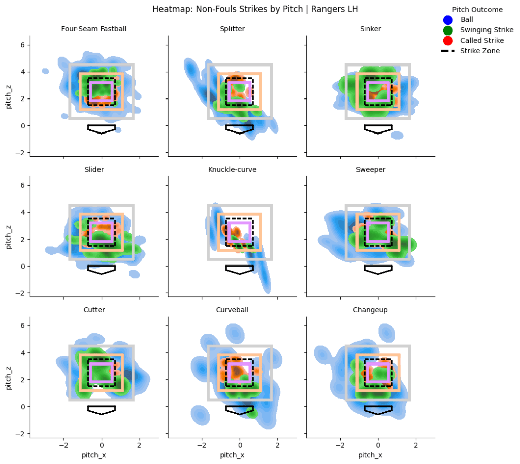 The Rangers’ lefties do a pretty good job staying relatively disciplined, maybe with the exception of curveballs in the dirt.