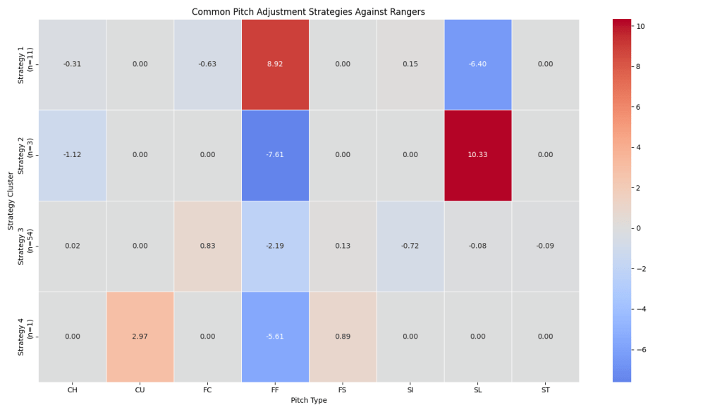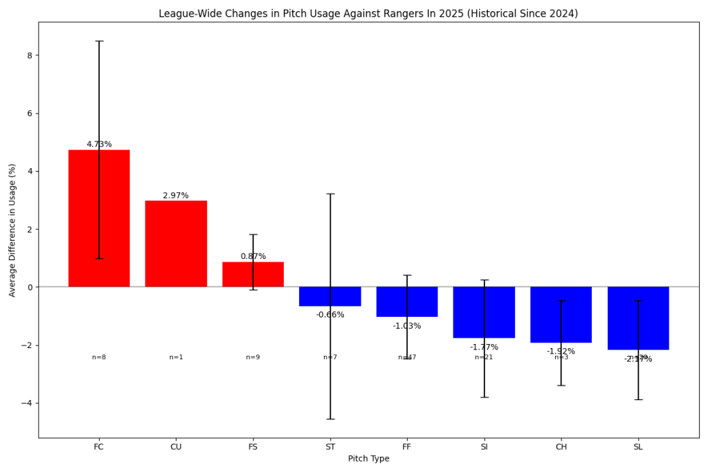 What Pitches Have Been Thrown More/Less Than Average Against the Rangers?